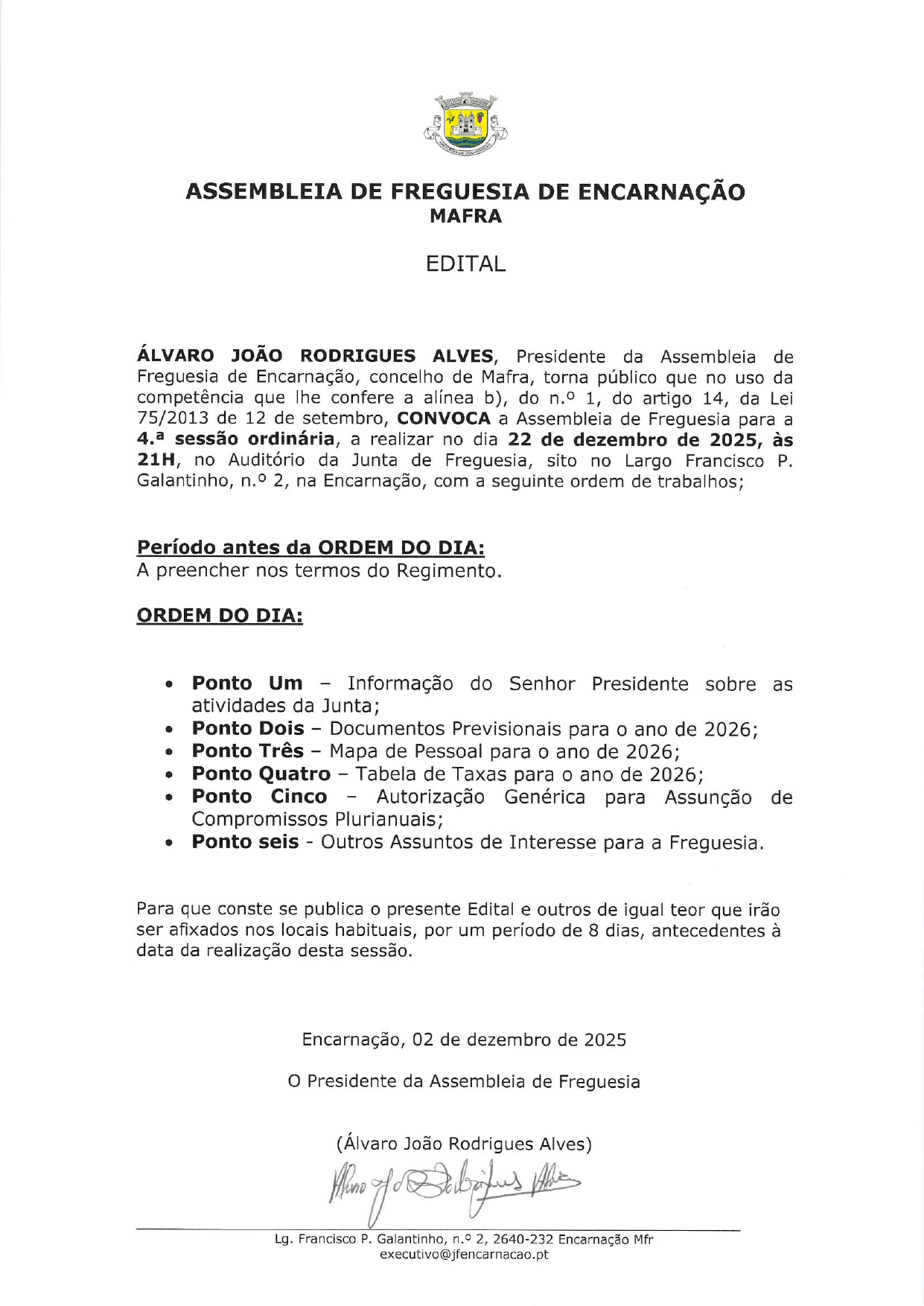 Edital-no1-2023-3Download Edital – Hasta Pública n.º1 – 2025_jpgDownload Anexo Hasta Pública n.º1 -2025 -Condicoes-GeraisDownload EDITAL-Reuniao-de-Delegados_Download EDITAL – Assembleia.Download EDITAL – AssembleiaDownload EDITAL- Assembleia de Freguesia de Encarnação Dezembro_1Download